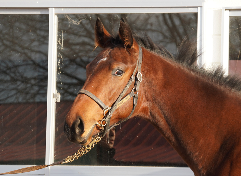 白井牧場が誇るゲランの一族から、生産馬として悲願のGⅠを制覇。2025年の高松宮記念を制したサトノレーヴをはじめ、おばチリエージェからは3頭の重賞勝ち馬が誕生。クラブ活躍馬も多数輩出してきたこの牝系は、益々繁栄していると言えるでしょう。ボックス型の体形で、程よく伸びがあり、首差しから胸前にかけてボリューム満点。牝馬としては十分な馬格を有しています。母系は悍性の強い馬が多い傾向にありますが、本馬はどっしりと構えた落ち着きのある性格をしており、これは競馬でもプラスに作用するでしょう。父は英2000ギニーなどGⅠ2勝の名マイラー、ポエティックフレア。現役時代は半年間で8戦もしているタフな馬です。父の適性、母系の豊かなスピードを受け継ぎ、芝の短距離~マイルを中心に、ブラックタイプに太字で名を刻む活躍を期待します。