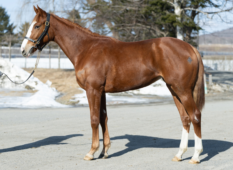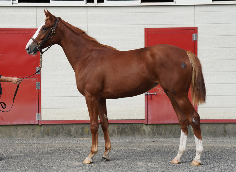 アドマイヤラピスという馬は優秀な馬で、重賞勝ち馬を3頭も出したというだけでも素晴らしいのですが、走った馬は何も手をかけなくても体が出来ていくという特徴がありました。代を経てもそれぞれの代から堅実に走っており、そうした特徴を受け継いでいてほしいと願っています。本馬は初仔とは思えないほどボリュームがあり、この肉付きの良さは父が出ているのではないかと思います。活気ある母系と父の勢いから、この牝系に名を残すような活躍を期待しています。