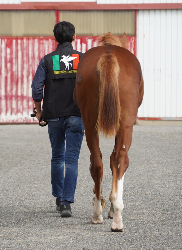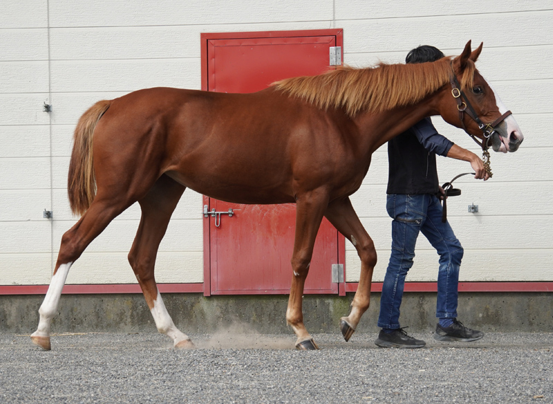 馬体チェックを行ったところ、右後肢(飛節)に将来的にOCD(離断性骨軟骨炎)に発展する可能性を指摘されたため、予防的措置として7月上旬に該当箇所の手術を実施しました。手術は無事に終了し、術後の診察において獣医師からは「競走能力に影響はない」との診断を受けています。なお、術後2週間くらいは舎飼いで経過を観察し、その後は徐々に放牧を始めていきます。