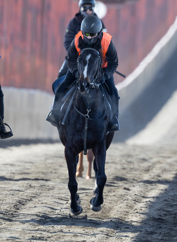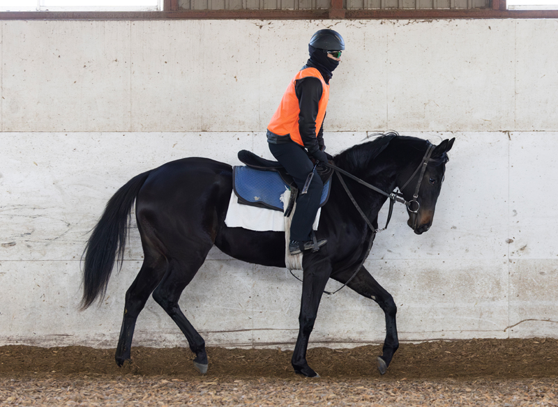 引き続き、屋根付きのダートコースでハッキングを2800~3500m、隔週でダートの屋根付き坂路でハロン17秒くらいのキャンターを800m乗っています。適度に強弱をつけながら調教を行っているため、テンションが上がり過ぎることはありません。調教中は我慢が利いており、気性面も徐々に成長している印象です。走ろうとする前向きな気持ちを最大限活かせるよう留意しつつ、このままステップアップを図っていきます。