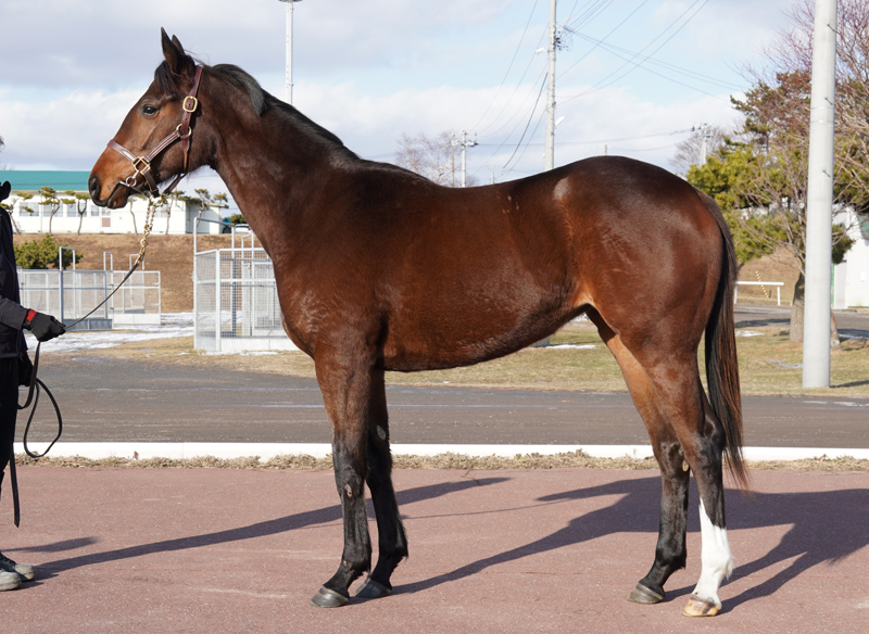 カラーガードもダンシングルーラーもクラブで走り、勝利を挙げた馬ですが、この牝系は仕上がりが早いところが良いと思っています。配合した父の良さは、GⅠ馬でありながら、2歳から6歳までフルに走り、38戦14勝の成績で重賞も9勝と実にタフに走ったところです。本馬は幅があり、ガッシリした体形ですが、動きには素軽さもあります。ダート主体に距離もある程度こなし、使い減りせず父のようにタフに走ってほしいと思っています。