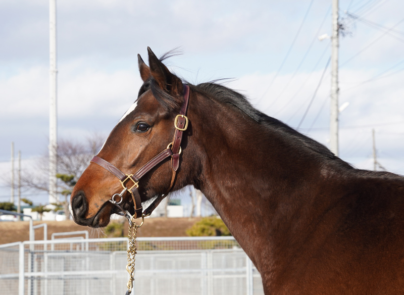 現在は、屋内の角馬場主体にダクやハッキングによる乗り馴らしを進めています。いくらか繊細なところはありますが、人の指示に対して素直に動けています。また、物見等の幼い面も次第に解消されつつあり、次のステップに進める準備が整ってきました。なお、成長途中の体形であるため、過度な負荷は避ける必要がありますが、今後は屋内のダートコースやウッドチップの屋内坂路コースでの運動を始める予定です。