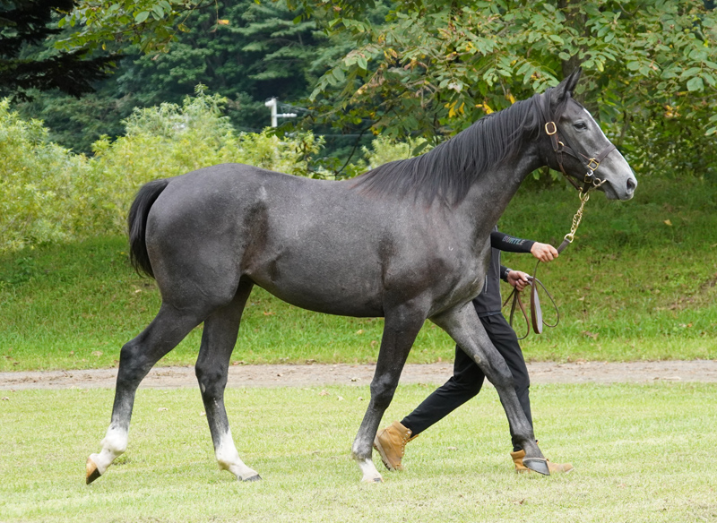 曽祖母ダイワスカーレットは最優秀3歳牝馬に輝いた名牝。同期のライバルだったウオッカとの手に汗握る激闘は今でも思い起こされます。その母スカーレットブーケから流れる母系は非常に優秀。ダイワメジャー、ダイワルージュ、ダイワファルコンと重賞勝ち馬の枚挙に暇がありません。近年ではサヴァがリステッド競走に勝利しています。父はGⅠ6勝のゴールドシップ。産駒は自身同様に芝の中長距離を得意とし、種牡馬ランキングも年々上昇しています。血統的にも、非常に底力に溢れる配合となりました。本馬は繋ぎが長めでしなやかな歩様が目を惹きます。柔らかみもあって、芝向きの印象。キリッとした気の強さを持ち合わせており、将来は他馬に怯まないような競走馬になってくれるでしょう。父が歩んだ黄金の航路。芦毛伝説の継承者に名乗りを上げてほしい一頭です。