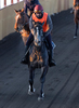 現在は、屋根付きのダートコースでハッキングを2400m、週1回はダートの屋根付き坂路800mでキャンター調教を行っています。徐々に運動の負荷を強め、速い時には坂路をハロン20秒近い時計で乗るようになりました。ペースを上げていくと次第にハミを取るようになりますが、ゆっくりの時は促しながらの傾向があります。また、やや前重心な走り方をしているため、体を大きく使って走れるようにフォームの修正に努めていきます。現在の馬体重は436kg。