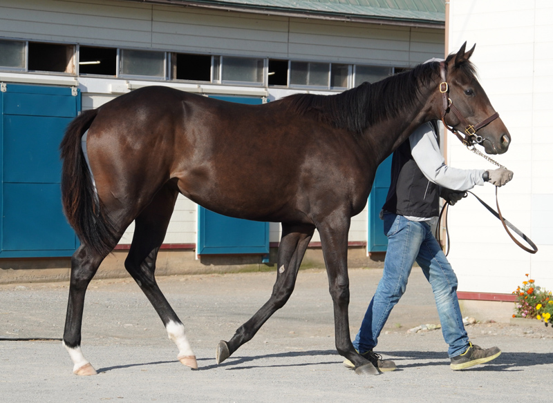 7月中に馴致を終えた後、コネクトFで昼夜放牧を行い、心身のリフレッシュに努めました。この期間中に背丈が伸びたことで、四肢がよりスラリと映えるようになり、バランスの取れた格好の良い馬体へと成長しています。その後は、乗馬の手法から基礎事項を固めるために、モモセRFに移動しています。体を上手く使ったフォームで走れるように、また口向きの向上等に取り組んだ上で、来月中にパッショーネに戻す予定です。現在の馬体重は420kg。