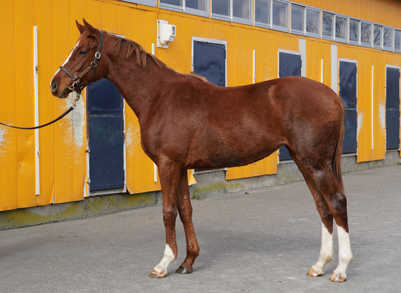 四代母はピルサドスキーやファインモーションの母として有名で、優秀な母系です。父は芝、ダート、距離も様々なタイプの産駒を出し、母系の特徴を引き出すタイプと思われ、ゴールドアリュールやガリレオの血を有する母系との配合で、力の要る馬場に適していると考えています。しっかりした骨格と柔軟性に富んだ筋肉をしており、フットワークはスピード感に溢れています。穏やかな性格で距離の融通も利き、中距離くらいまでこなしてくれると思います。